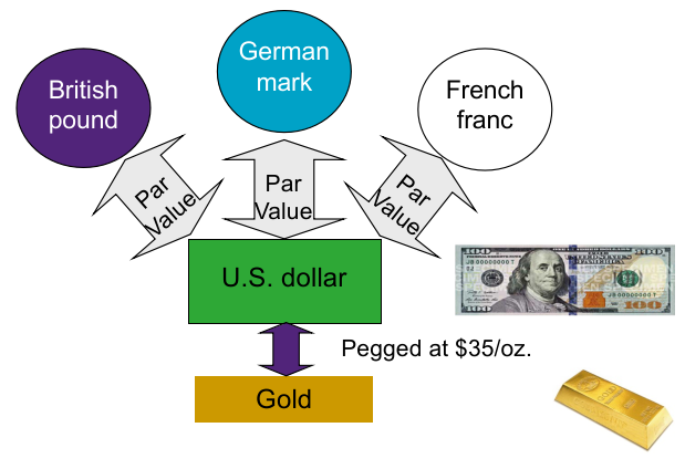 - USD was fixed in terms of gold (USD 35 per ounce)