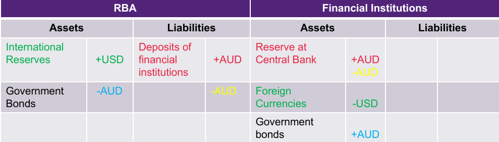 RBA sell AUD and buy USD or foreign assets from financial institutions