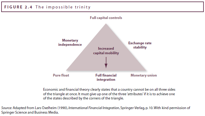 - diverging fiscal, monetary policies and external shocks caused the system's demise