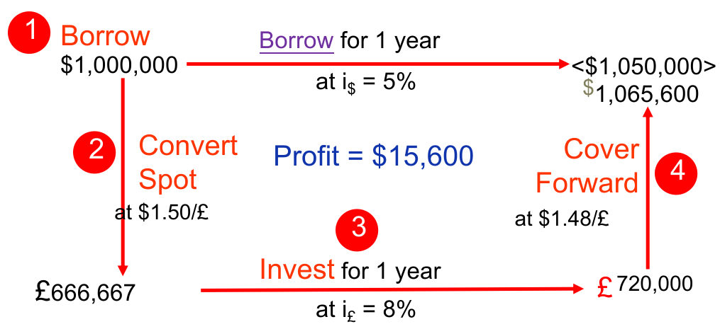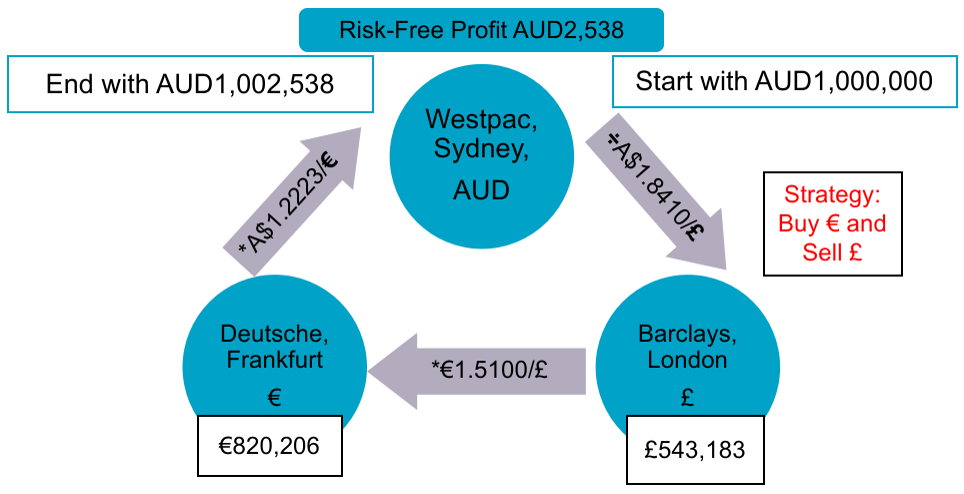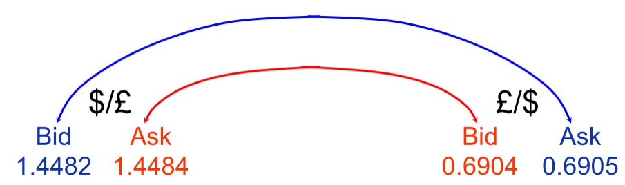 Arbitrage: take advantage of inconsistent prices to make risk free profits (unlikely to last long)